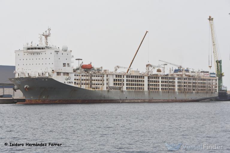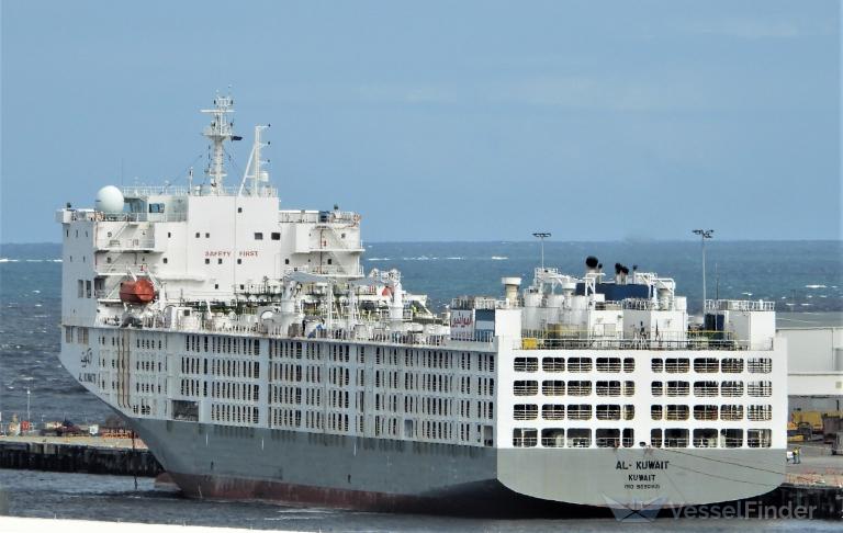 The 190m-long (623ft) Al Kuwait is a Kuwaiti-flagged livestock vessel, according to the Marine Traffic website.